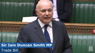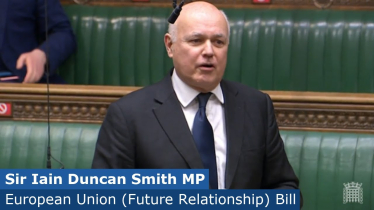 Sir Iain Duncan Smith welcomes the trade deal with the EU 30th December 2020 Sir Iain Duncan Smith congratulates the Prime Minister on securing a trade deal with the EU so we can take back control of our sovereignty and set our own... Speeches in Parliament
